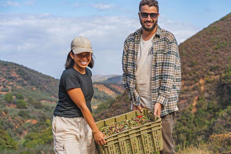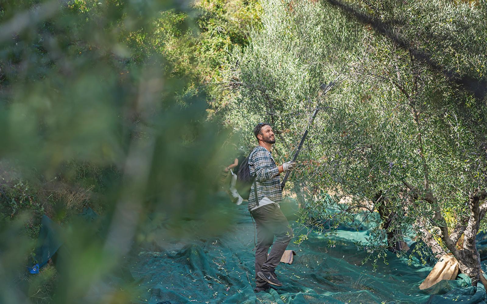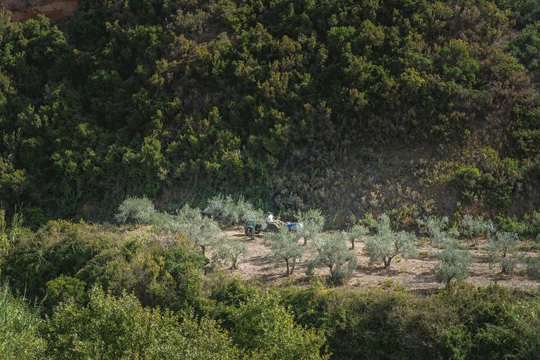 A little further down, in Kyparissos, the Marakas family lives among the olive trees, having dedicated their lives to their care. Lefteris, together with his wife Ranel, left behind their life in the U.S. to return to Greece and devote themselves to olive cultivation. Their decision wasn’t an easy one, but their dream remains alive – to transform their estate into a multifaceted space that blends gastronomy, art, and agritourism. Lefteris’ father tirelessly worked these trees, even inventing a device to separate the pit from the olive fruit. In their own way, each member of the family contributes to preserving tradition and strengthening their bond with the land that defines them.