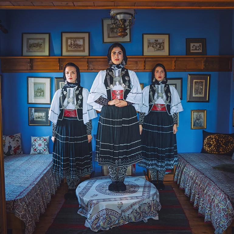 A few years later, in 2018, part of his work is exhibited at the Benaki Museum under the title Ethos / Another Side of Greece. His photographs captivate audiences, and representatives from the Musée Fragonard invite him to bring the exhibition to France, focusing exclusively on women in traditional attire. Michael accepts the challenge. The idea for a unique project highlighting the rich cultural heritage of Greece, reflected in the garments of each region and the role of women as custodians of such, is born and gradually evolves into a fascinating lifelong journey.