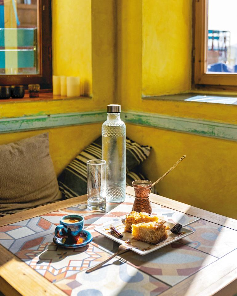 I ask an elderly lady where to begin, and she says, “Start from our pride, our mediaeval castle. Ascend through the shade. Whichever path you take will lead you there; you won’t get lost.” Ascending, I pass through its three successive gates, gazing at the grand castle door, the turrets and the battlements. It is the second-largest castle in Lesvos, and one of the best-preserved in the Eastern Mediterranean. It was built by the Byzantines, later restored by the Genoese, and embellished by the Ottomans. The breathtaking view of the Aegean leaves me in awe as the Greek and Turkish shores appear ready to embrace each other. Descending towards the village through cobblestone alleys and blooming courtyards, glimpsing the sea occasionally, I navigate the market’s narrow streets and traditional shops. I observe dozens of fountains made of rough red and brown stone with embossed inscriptions – remnants from Ottoman times. I am captivated by the hanging balconies of the houses. I pause at a café, enjoying a piece of exquisite baklava from the local women’s cooperative. An elderly man engages in conversation, saying, “The ancient city was initially called Mythimna, after the daughter of King Macareus. The Gattilusi Genoese rulling family changed its name to Molyvos. Some say they named it after the abundance of mineral lead, while others attribute it to the Frankish designation, Μont d'olives – the mountain of olive trees.”