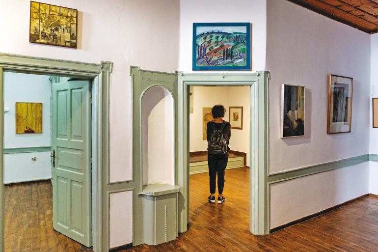 Further along, I visit the Komninakis-Krallis Mansion, adorned with magnificent frescoes and ceiling paintings from the 18th century, housing a branch of the School of Fine Arts, and the Giannakos Mansion, one of the most beautiful in Lesvos. Its multi-talented owner, Dora Giannakou-Parisi, is a skilled cook and a true artist, crafting unique traditional dolls that bear the UNESCO seal. My stroll wouldn’t be complete without mentioning the Municipal Art Gallery, which houses works by great artists such as Chalepas, Tsarouchis, and Mytaras.