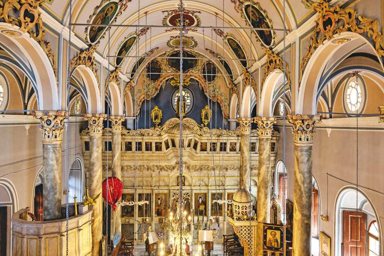 I continue my stroll through the market, with my first stop being the Historical Public Library, housed in one of the most beautiful buildings in Molyvos. It boasts around 20,000 volumes of print and audiovisual material – a vast ocean of knowledge and history. A little further down, a deadend alley with stairs leads to the Hamam, one of the most significant structures preserved from the Ottoman period. Next in line is the church of Agios Panteleimon, featuring the miraculous icon of Agia Anna. Constructed in 1844, it is a masterpiece by artisan Stratis Karekos.